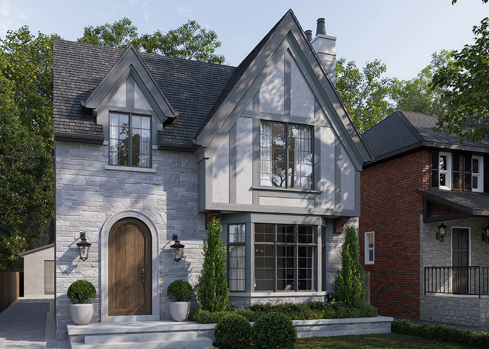 The architectural language draws from classic Tudor precedents—steep gables, stone cladding, and refined half-timber detailing—creating a composed, timeless façade that feels both established and distinctly new. The substantial renovation introduces a full third storey, allowing the home to grow vertically while preserving the rhythm and scale of the surrounding neighbourhood. This approach provides meaningful additional living space without overwhelming the streetscape, a key consideration in this historically rich context. Inside, the plan is carefully restructured to support modern family living. The main floor is organized around open, light-filled kitchen, dining, and living spaces that flow seamlessly toward the rear yard, supporting both everyday life and larger gatherings. The second level is dedicated to family bedrooms and shared spaces, while the newly added third floor creates a private primary retreat, complete with a dressing area and spa-like ensuite, offering privacy and separation from the rest of the home. Project Kingsway Traditional is a thoughtful balance of heritage-inspired design and contemporary functionality—demonstrating how a well-considered renovation can respect its surroundings while delivering the space, comfort, and flow expected of a modern family home.
